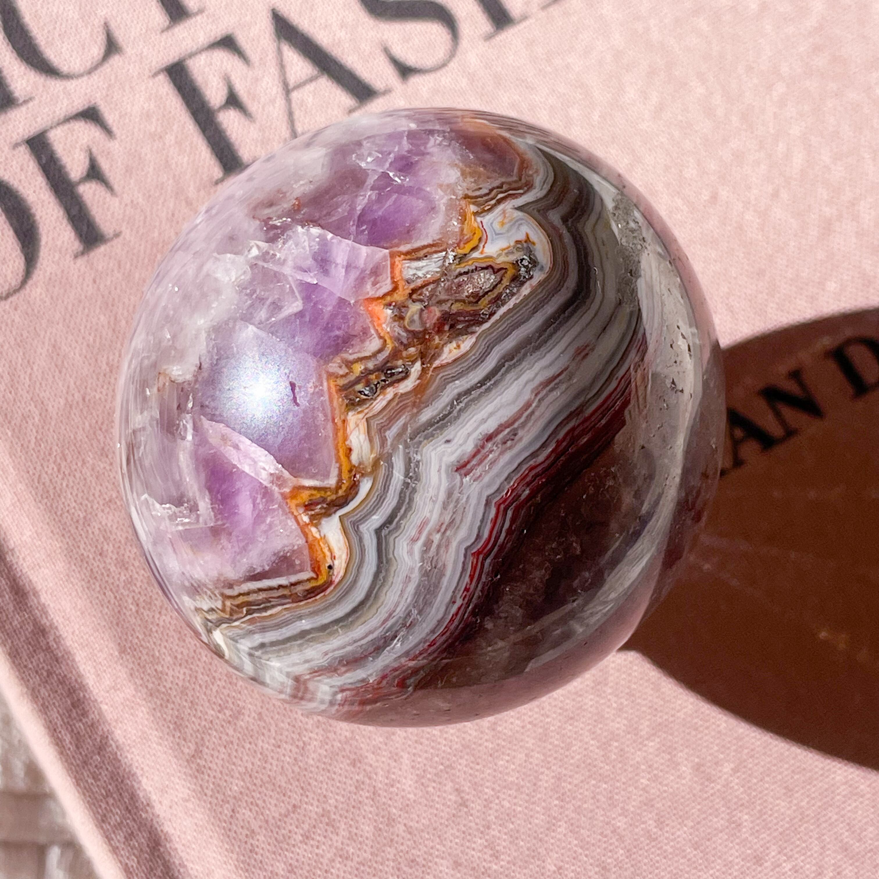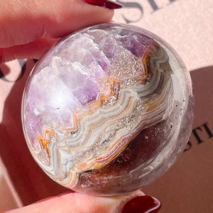 Pink Lace Agate & Amethyst Sphere ✧ ピンクレースアゲート&アメシスト