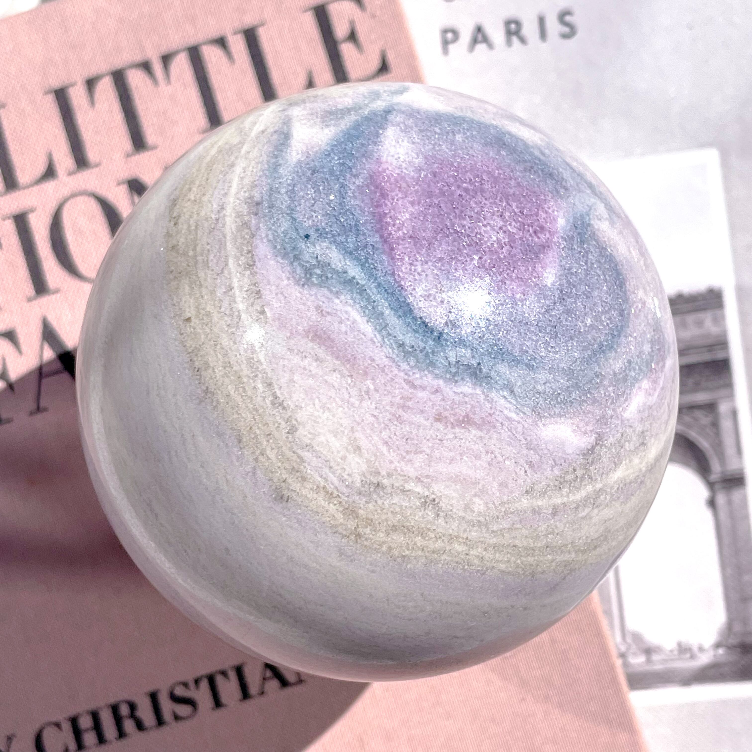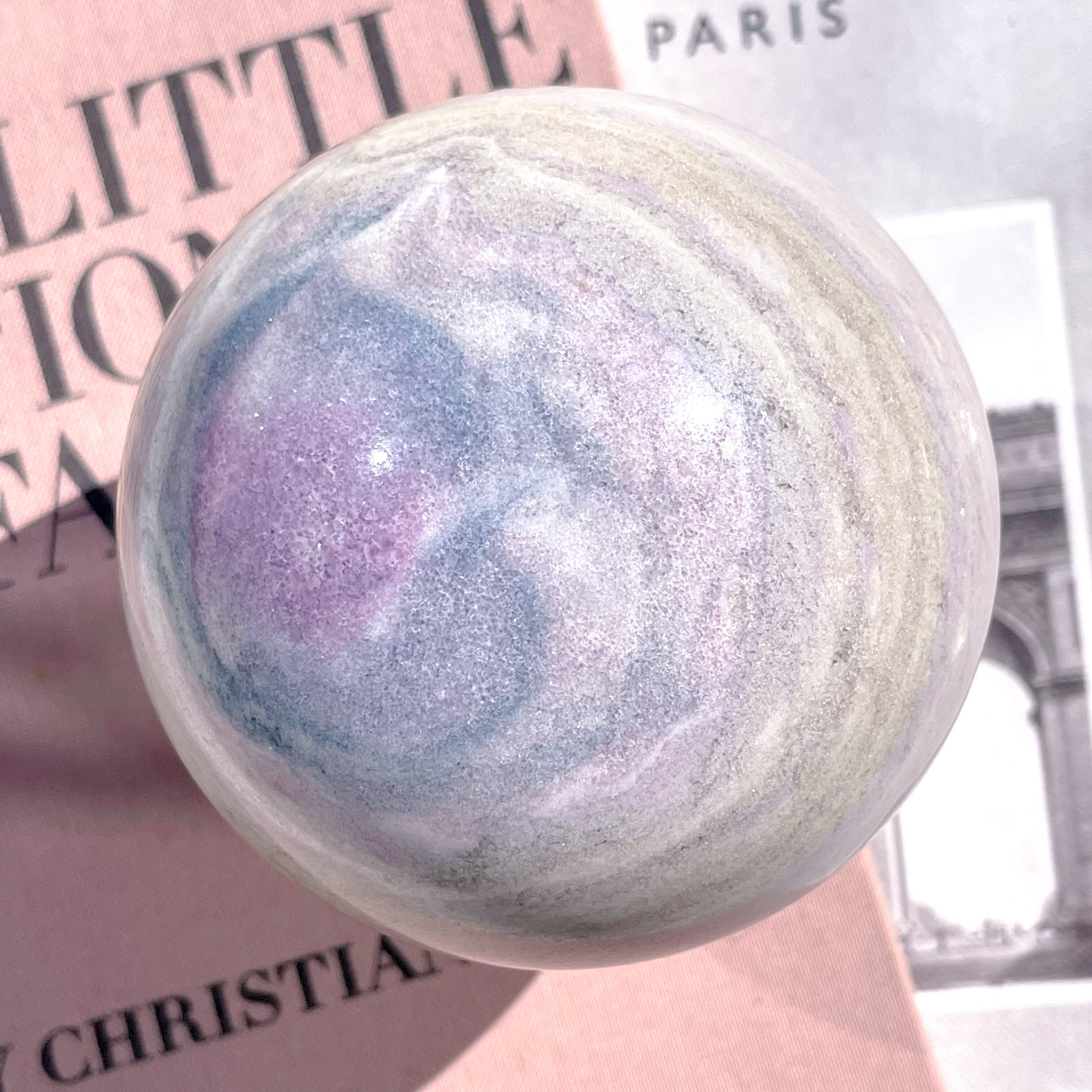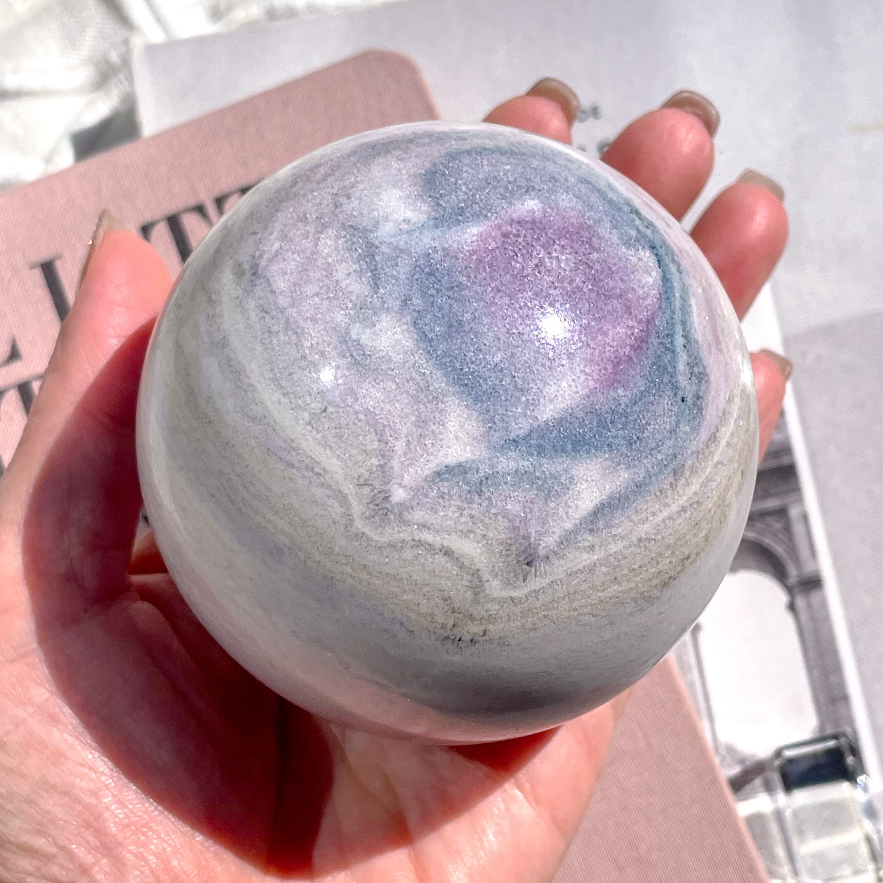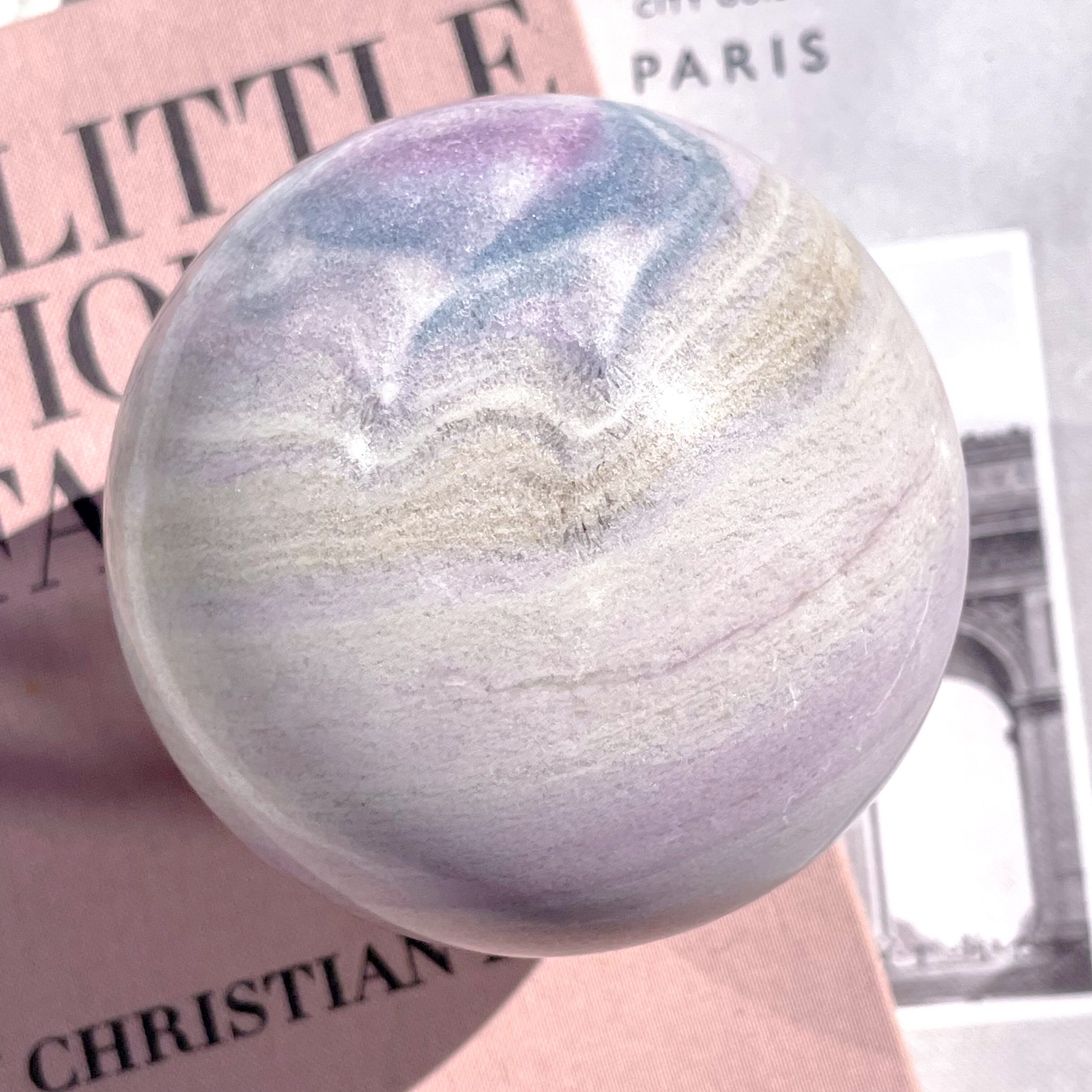 まるで手のひらの中の宇宙・惑星のような、シルクフローライトのスフィア。