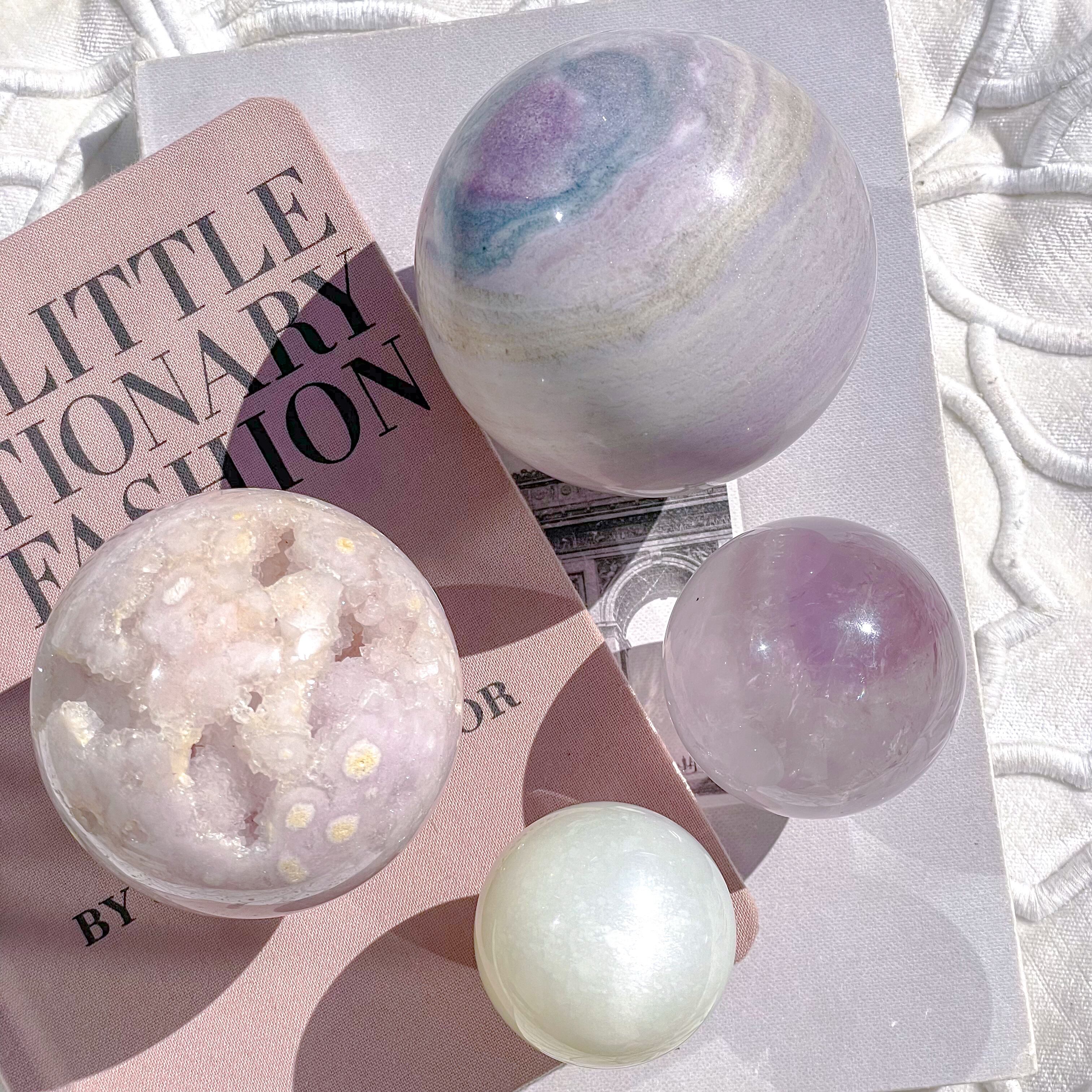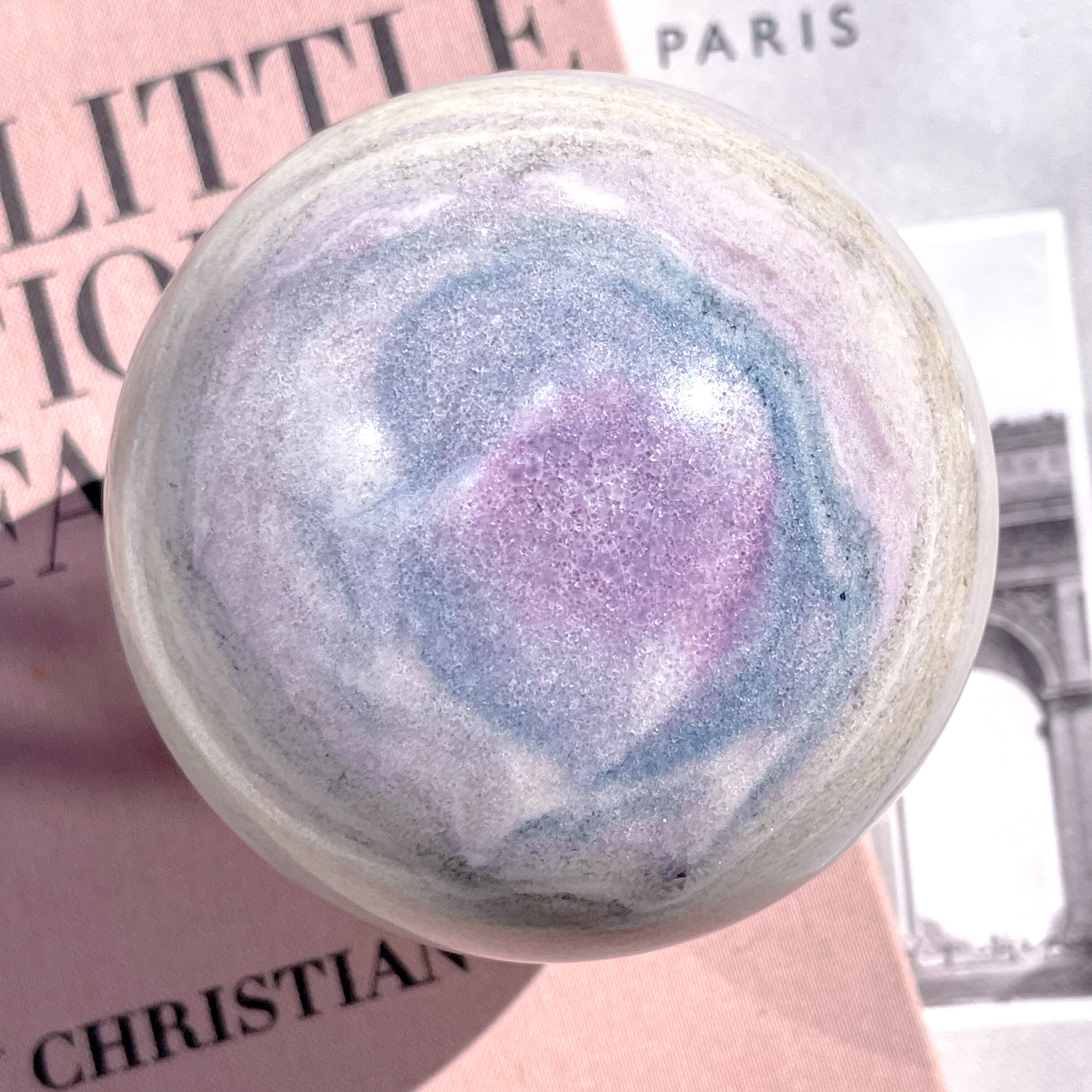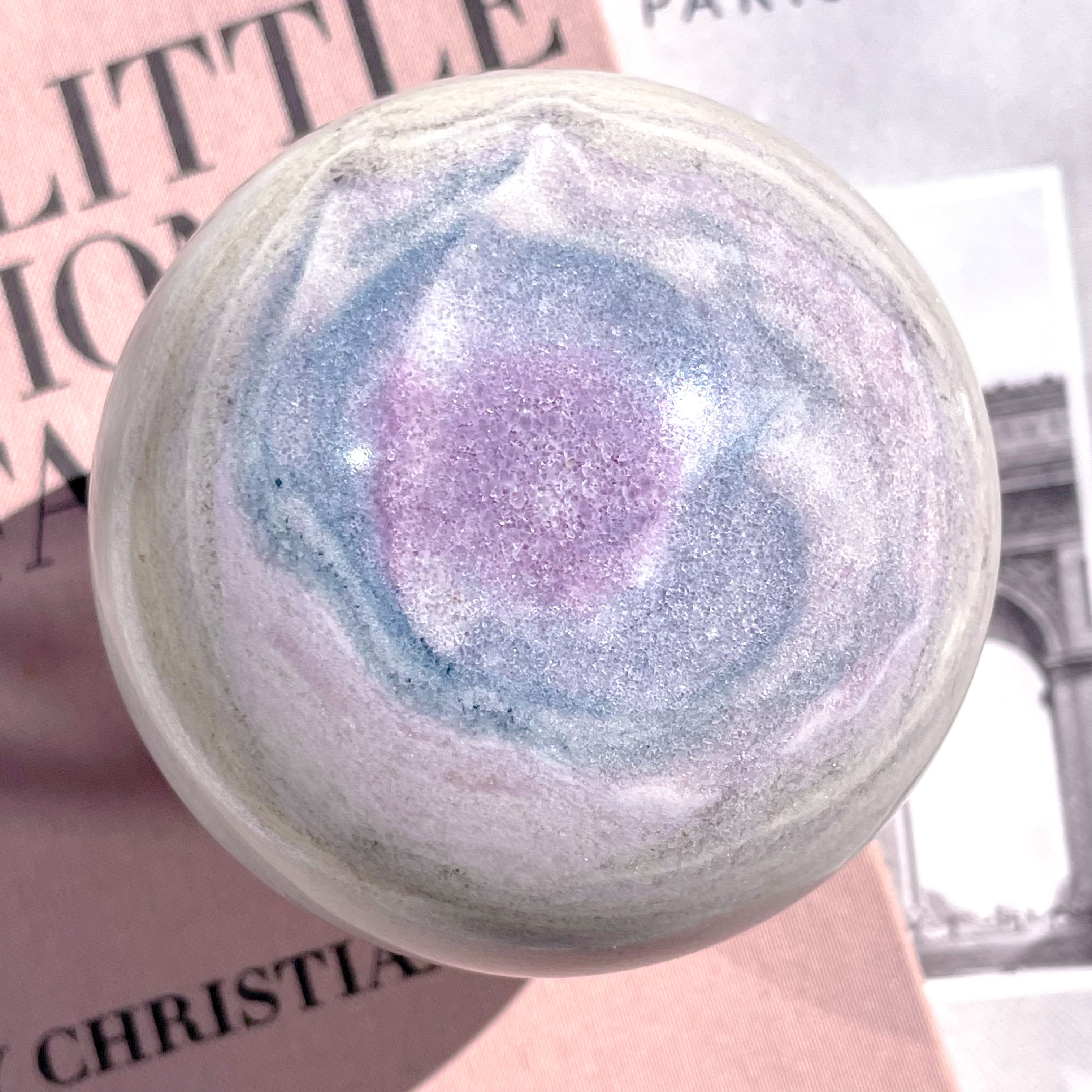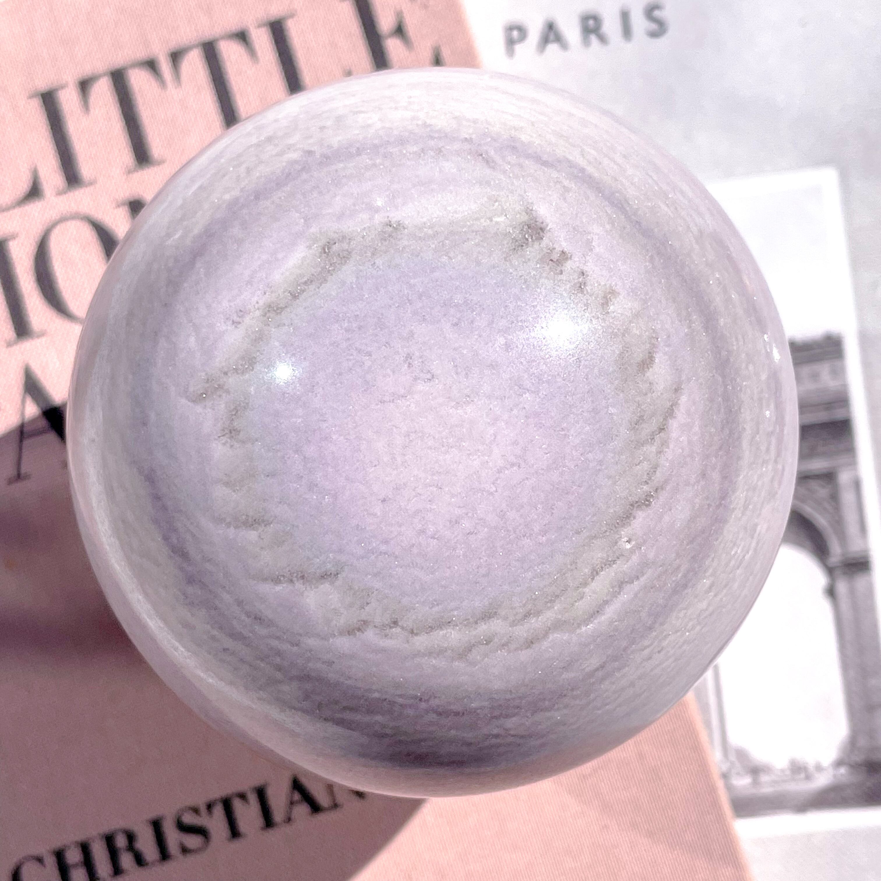 まるで手のひらの中の宇宙・惑星のような、シルクフローライトのスフィア。